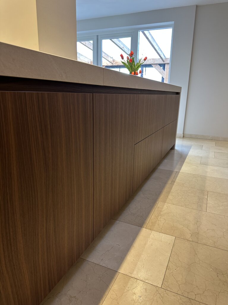 Sommige projecten beginnen met een wens. Andere met een droom. Bij dit project begon het met allebei. Onze klant droomde van een stijlvolle woonkeuken die naadloos zou aansluiten bij de architectuur van de woning – strak, warm en uitnodigend tegelijk. Een ruimte die niet alleen functioneel is, maar ook voelt als het hart van het huis.